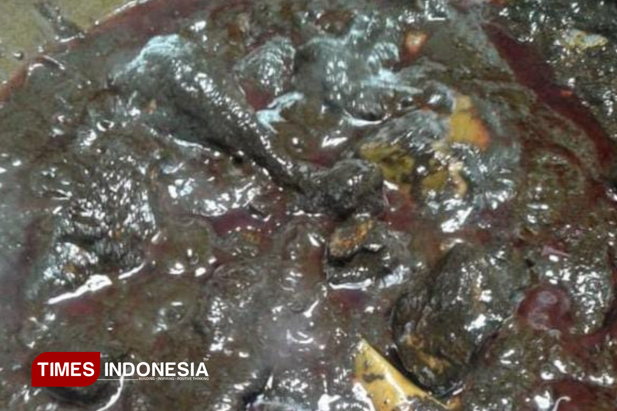 Warna kuahnya yang gelap bukan sekadar tampilan, melainkan hasil dari proses panjang pengolahan rempah yang dimasak dengan kesabaran. Daging ayam kampung yang padat dan gurih menyerap bumbu hingga ke serat terdalam.