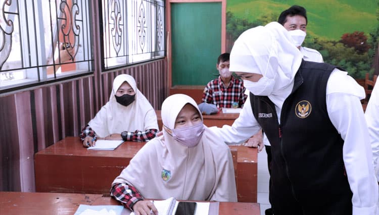 TIMES Padang/Gubernur Khofifah saat meninjau PTM terbatas. (FOTO: Dok.Humas Pemprov Jatim)