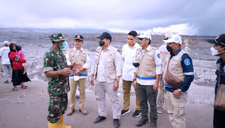 TIMES Padang/Ketua Dewan Penasehat Partai Gerindra DPD Jawa Timur, Bambang Haryo Soekartono bersama DPC Partai Gerindra Surabaya, Lumajang dan Malang saat meninjau dan menyerahkan bantuan Bencana Erupsi Gunung Semeru.Foto Partai Gerindra Jatim