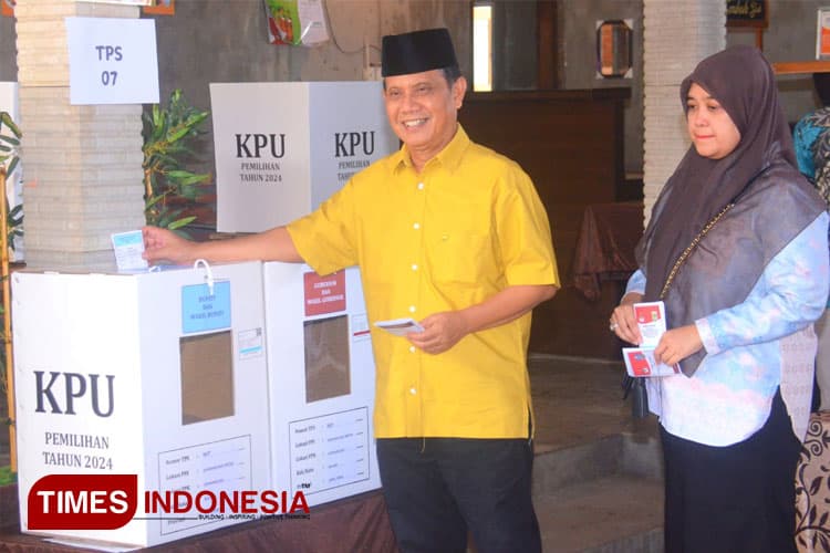 TIMES Padang/Calon Bupati Malang nomor urut 2, Gunawan HS, saat memberikan hak suara dalam pilkada 2024, di TPS 07, Desa Gondanglegi Wetan, Kabupaten Malang, Kamis 27/11/2024. (FOTO: Adhitya Hendra/TIMES Indonesia)