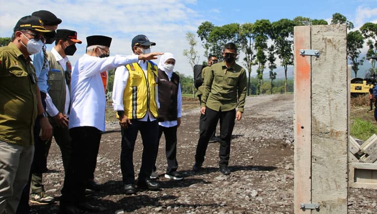 TIMES Padang/Sekjen PUPR RI Mohammad Zainal Fatah dampingi Wapres RI KH Ma'ruf Amin meninjau lokasi pembangunan Hunian Sementara (Huntara) bagi korban terdampak erupsi Gunung Semeru di Desa Sumbermujur, Kecamatan Candipuro, Kabupaten Lumajang.